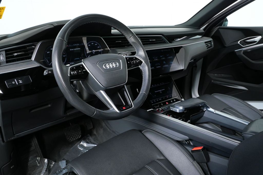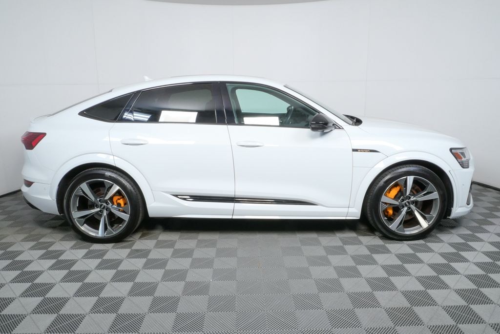 The 2022 Audi e-tron S Sportback in Glacier White Metallic with Black leather delivers striking electric performance with refined luxury and advanced Audi technology. Its tri-motor quattro system and sport-focused design create a dynamic yet sophisticated driving experience.