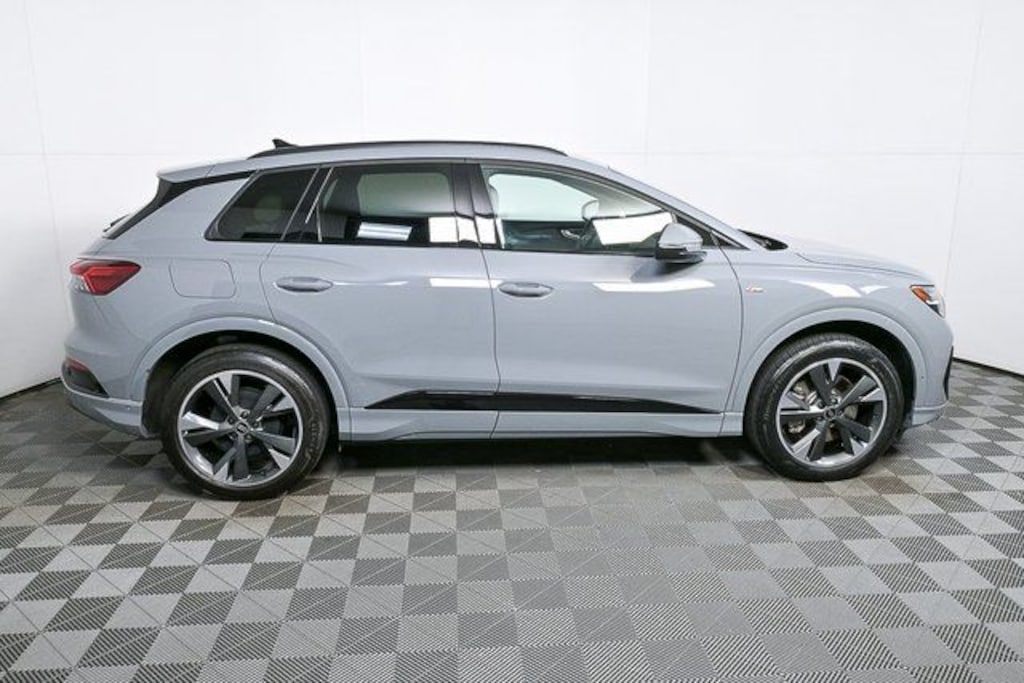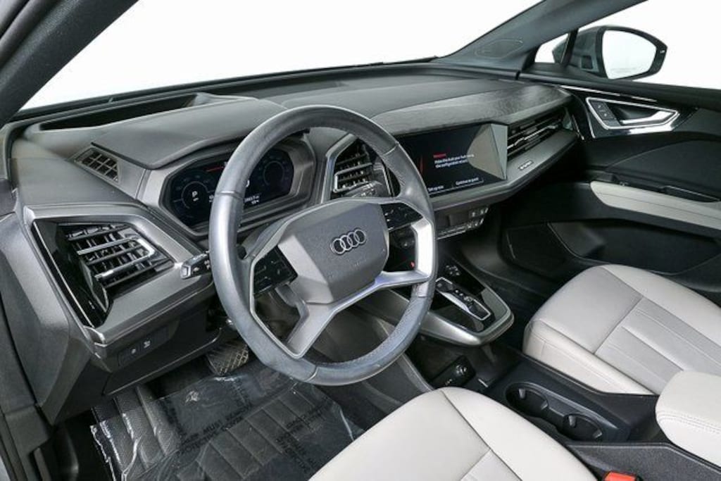 The 2024 Audi Q4 50 e-tron quattro in Pebble Gray pairs clean electric performance with a refined, tech-forward cabin finished in Parchment Beige leather. Equipped with the Prestige and Black Optic packages, this all-electric Audi delivers confident quattro all-wheel drive, advanced driver assistance, and a premium interior experience designed for everyday comfort and modern connectivity.