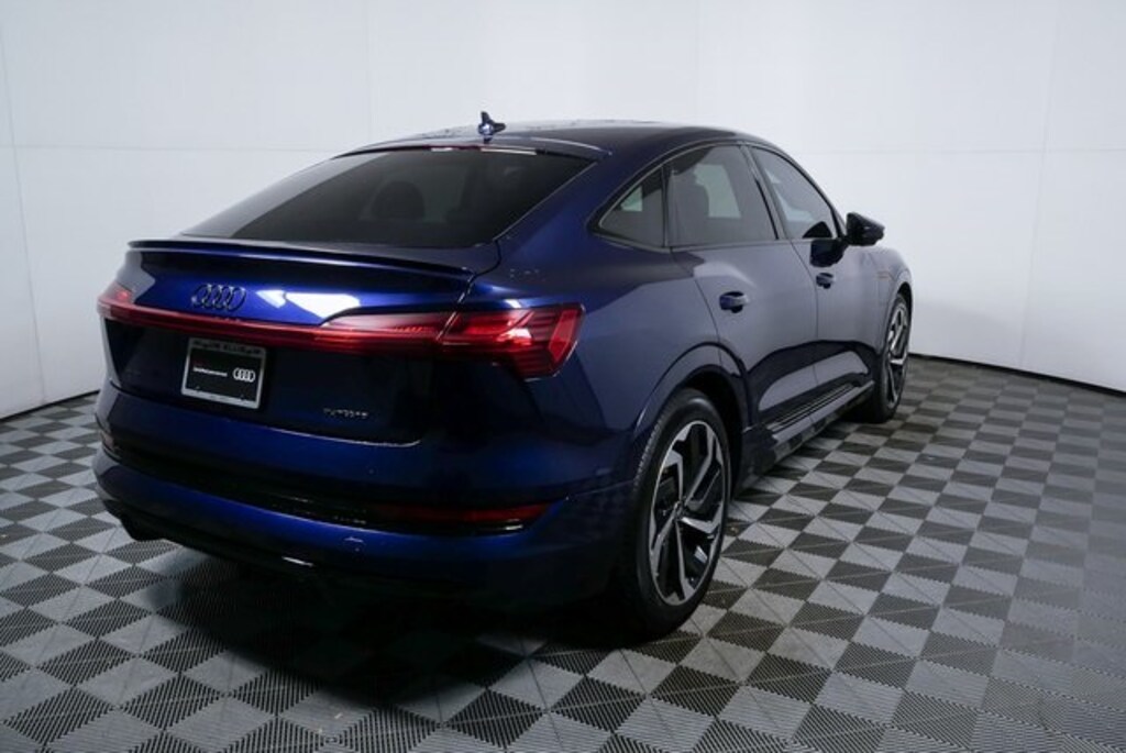 The 2022 Audi e-tron Sportback quattro blends its sleek coupe-inspired design with refined electric performance and an upscale cabin finished in Black leather. Equipped with the Premium Plus package, Black optic package, and distinctive 21-inch rotor wheels, it combines comfort, advanced technology, and striking cosmetic enhancements. Navarra Blue Metallic highlights the Sportback’s flowing silhouette, while features such as Matrix-design LED headlights, Bang & Olufsen 3D sound, and dual charging ports elevate everyday usability and luxury.