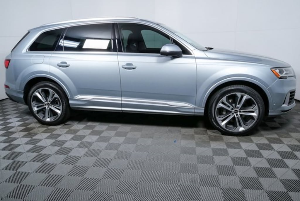 The 2023 Audi Q7 55 TFSI quattro in Satellite Silver Metallic with Black Leather offers a luxurious and versatile 7-passenger SUV experience, combining advanced technology, refined interior comfort, and Audi’s signature quattro all-wheel drive for confident performance in all conditions.